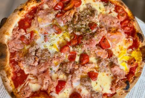 Tomates San Marzano, mozzarella, tomates cerises, saucisse italienne, bocconcini di Bufala, croutes fourrées à la ricotta
