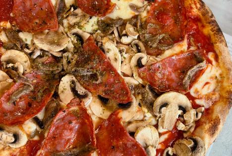 Tomates, mozzarella, salami piquant, salami Nduja(fondant et piquant), salami non-piquant
